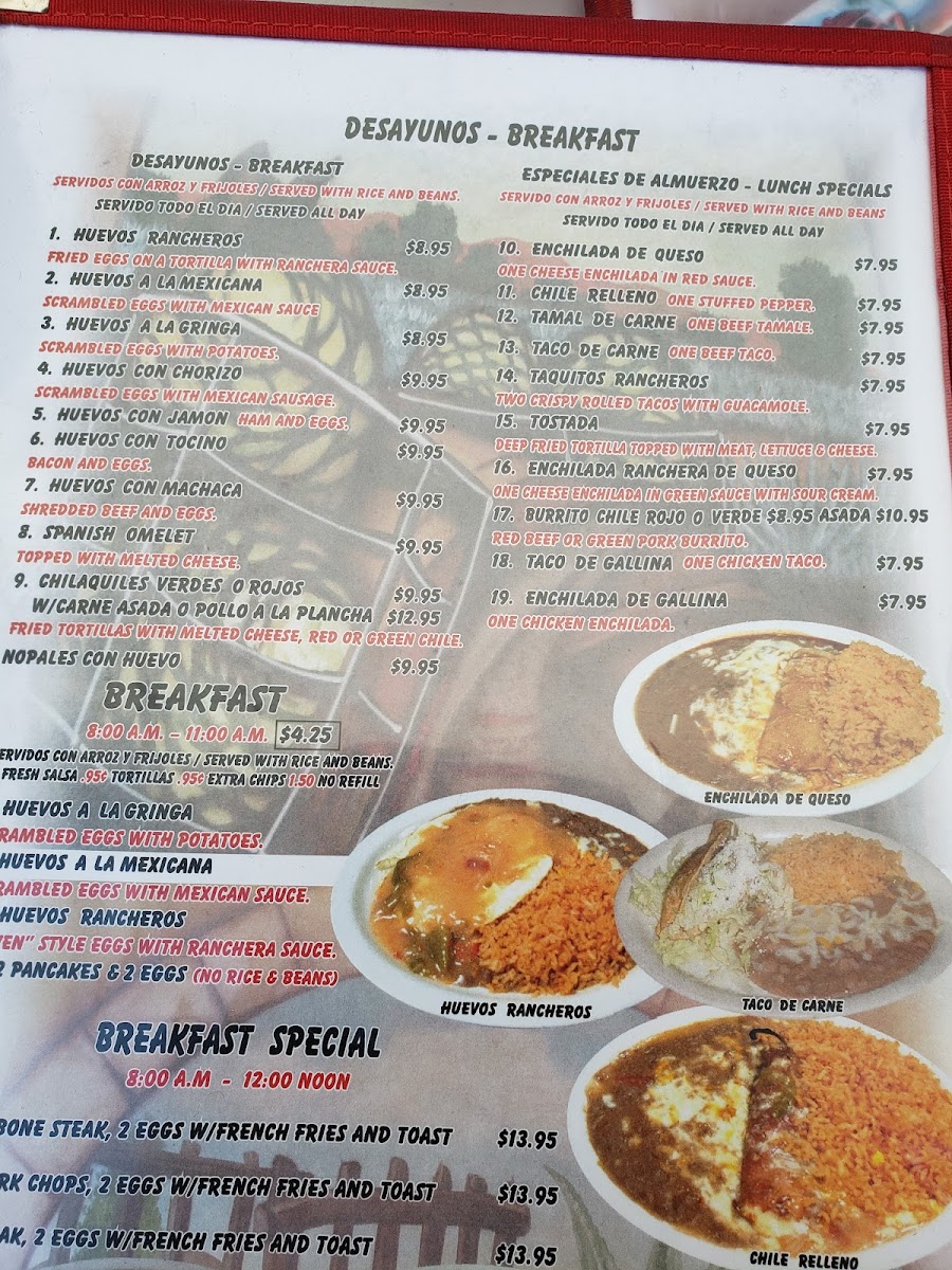 The menu showcases a variety of breakfast options that cater to every palate. Indulge in the Huevos Rancheros, perfectly fried eggs served on a tortilla smothered in rich ranchera sauce. For those craving something heartier, try the Molcajete paired with creamy guacamole, a customer favorite that promises to impress.